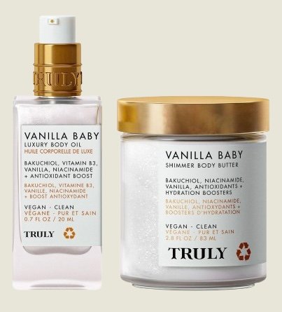 زيت الجسم وزبدة الجسم مع لمعة فانيلا shimmer من truly